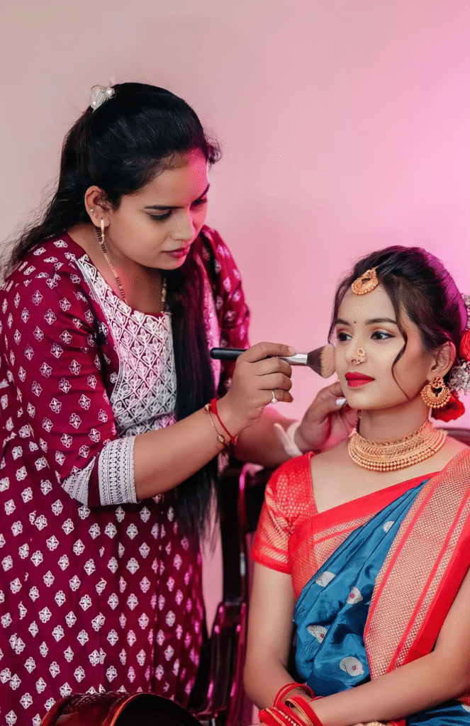 Perfect for working women & students. Learn bridal makeup, hairstyling, and saree draping in flexible weekend batches.